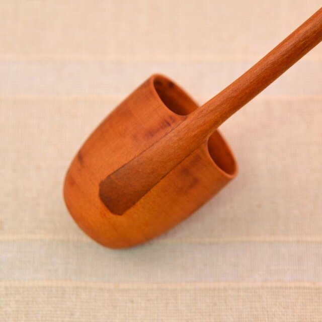 確かな建築技術を持った作家ならではのしっかりとした作りです。つくりて カントリーチェア サイズ 縁の直径:40mm / 深さ:50mm / 柄の長さ:400mm / 重さ:25.5g / 素 材 木(さくら) 注意事項 ギャラリーや他のサイトでも販売しているため、ご注文時点で在庫がない場合は制作に4~5ヶ月程度かかる場合があります。予めご了承下さい。