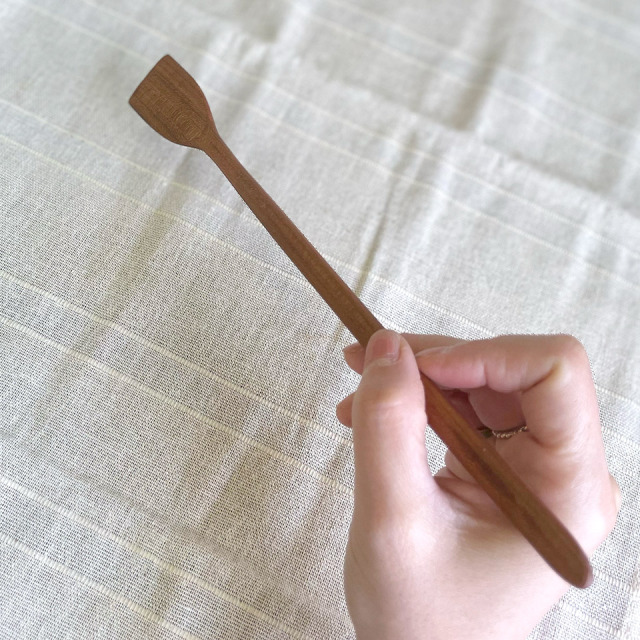 四角いスプーンがすくいやすく、裏側でジャム等をスーっと伸ばせます。手にしっくりとくる軽くて丈夫な木製のジャムスプーンは、パフェスプーンやマドラーなど色々な使い方でお楽しみいただけます。つくりて カントリーチェア(仲村旨和) サイズ 長さ:約250mm 素 材 木(さくら) 注意事項 ギャラリーや他のサイトでも販売しているため、ご注文時点で在庫がない場合は制作に4~5ヶ月程度かかる場合があります。予めご了承下さい。
