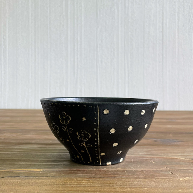 糸島市志摩の森の丘で陶芸の工房「studio2g」を開いた高須愛子さん。彼女の作品は、黒一色の素地に手描きの水玉や小花、線刻などの模様をあしらうというユニークなスタイルが特徴。彼女が作り出す黒色は重苦しさがなく、むしろモダンで可愛らしい印象があり、日々の食卓を彩ります。