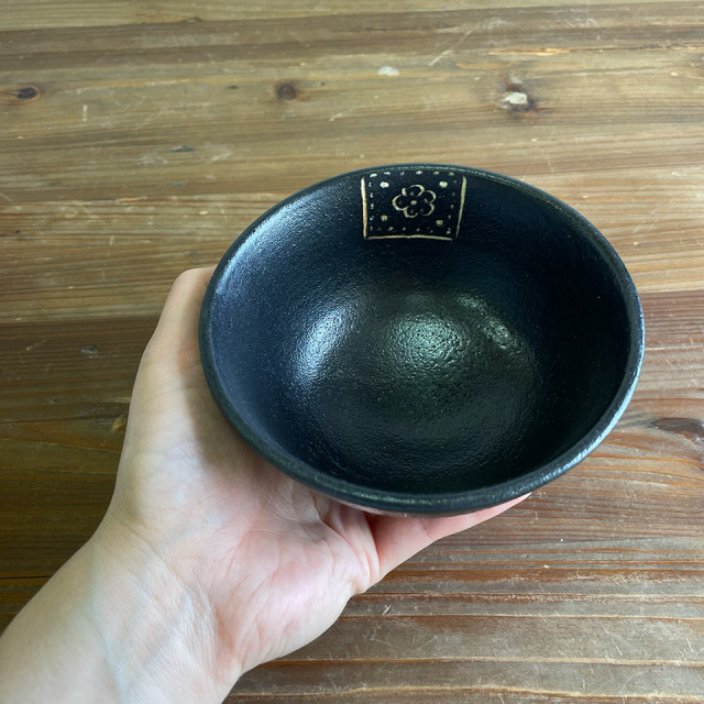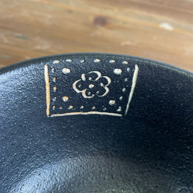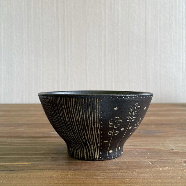 掻き落としの茶碗。深目の印象です。