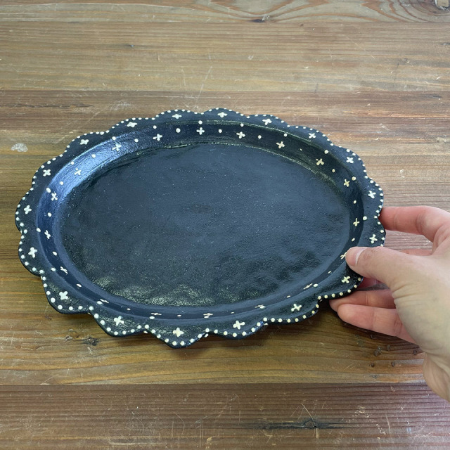 白いイッチンが印象的なお皿シリーズ。何枚も揃えたくなりますね。