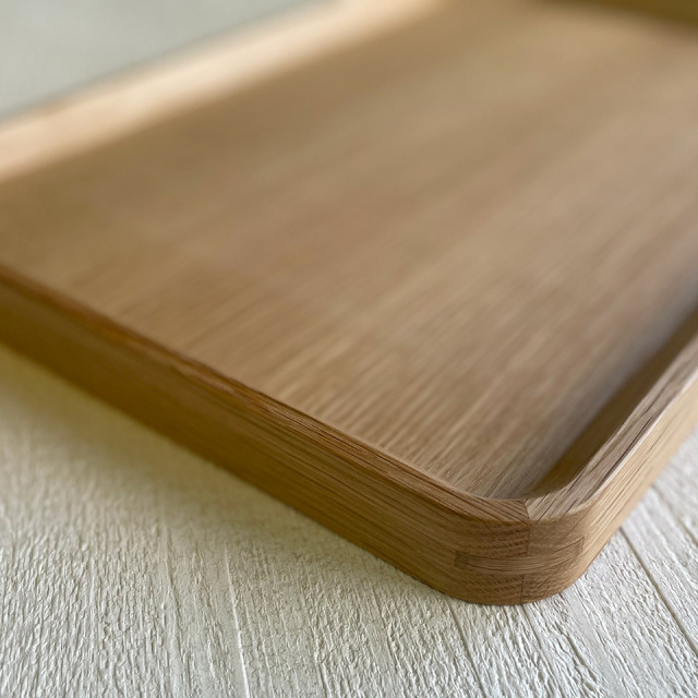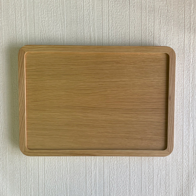 適度な重厚感があるのもポイント。長くご愛用いただけるものとして、大切な方へのお祝いの品や贈り物等にもおすすめです。つくりて ことのは木工舎(阿部祥次郎) サイズ 約W420mm× D300mm × H30mm 素 材 オーク 注意事項 ギャラリーや他のサイトでも販売しているため、ご注文時点で在庫がない場合は制作に2~3ヶ月程度かかる場合があります。予めご了承下さい。
