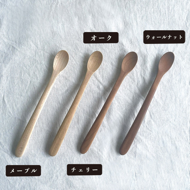 大切なお子さんの使っていたものをお手入れをしながら末長くお使いいただきたい木製カトラリー。出産祝いの贈り物としてもおすすめです。つくりて ことのは木工舎(阿部祥次郎) サイズ 長さ:180mm 素 材 メープル、ウォールナット、チェリー、オーク 注意事項 ギャラリーや他のサイトでも販売しているため、ご注文時点で在庫がない場合は制作に2~3ヶ月程度かかる場合があります。予めご了承下さい。