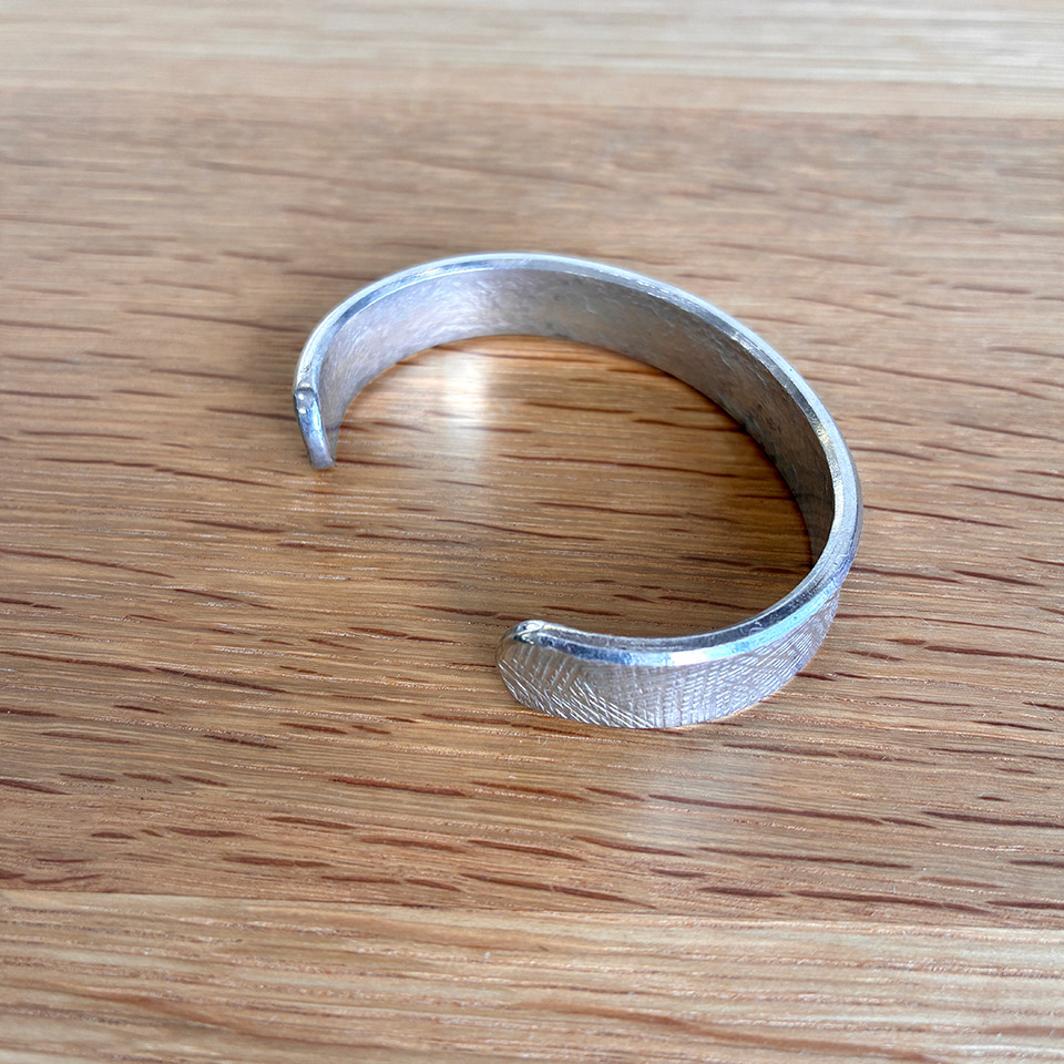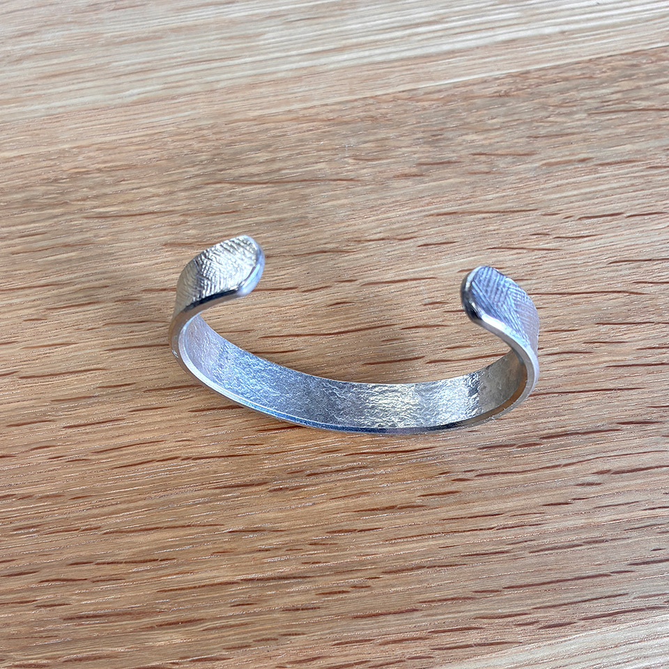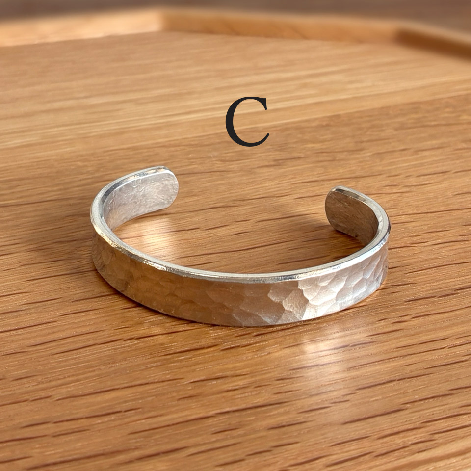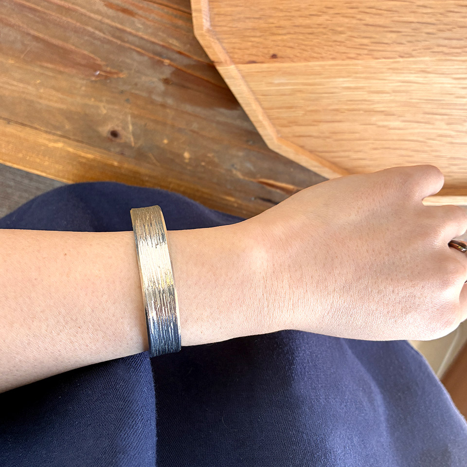 制作過程ムービー 飽きのこないシンプルデザインで幅も太めな錫のバングルは男女共に普段使いから楽しめます。脱着も簡単で模様は4タイプからお選びいただけます。