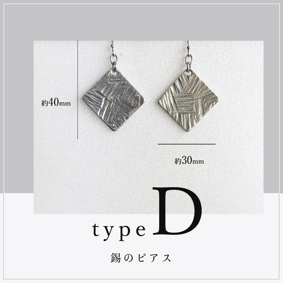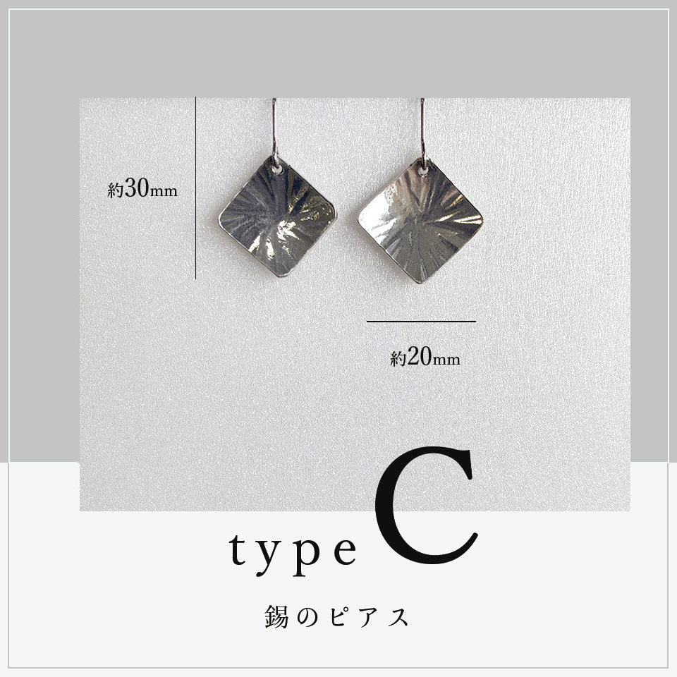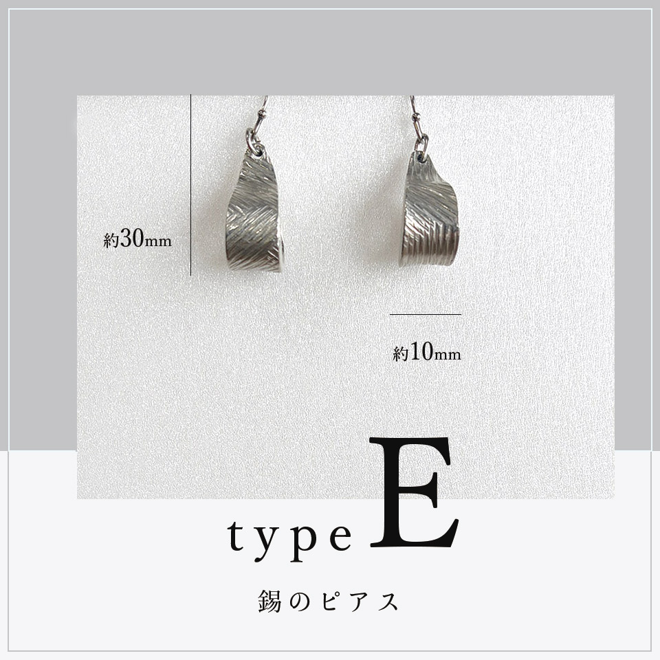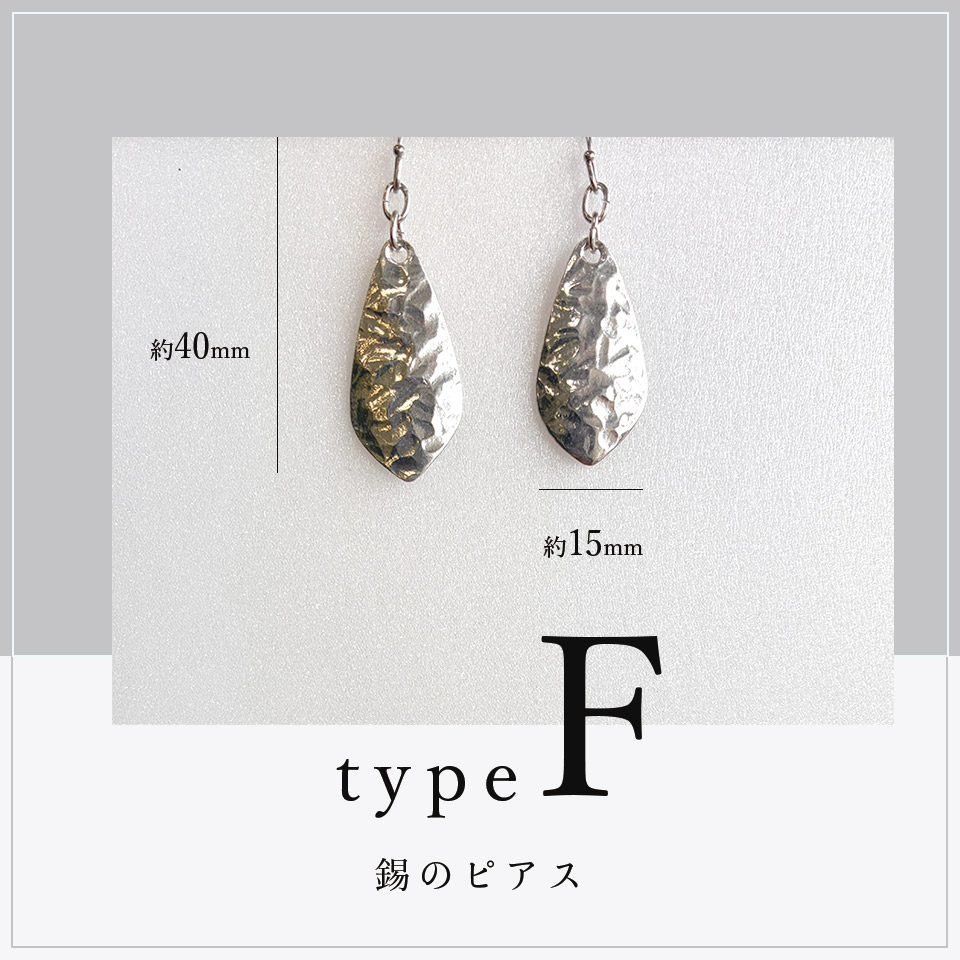 制作過程ムービー 軽くしなやかな錫でサイズや形、模様もさまざまなピアスに。錫特有の風合いと光沢が美しく顔周りを華やかに演出してくれます。