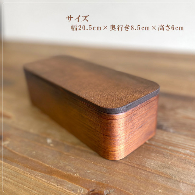 洗ったあとは、布巾で拭いて表面をできるだけ乾燥させてから保管することをおすすめします。つくりて 杉の木クラフト(溝口 伸弥) サイズ 幅20.5cm×奥行き8.5cm×高さ6cm 素 材 杉(漆塗装) 注意事項 ギャラリーや他のサイトでも販売しているため、ご注文時点で在庫がない場合は制作に2~3ヶ月程度かかる場合があります。予めご了承下さい。