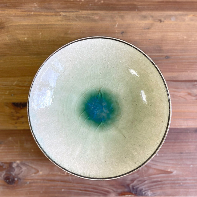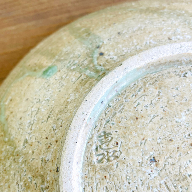 制作過程ムービー 全体的に淡い緑色と中央部分の深い緑色。灰釉の美しい濃淡をお楽しみいただける中鉢です。