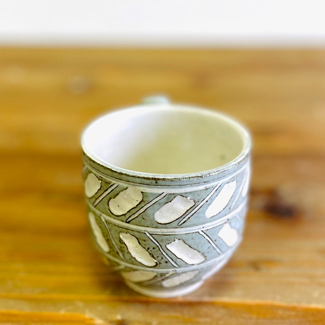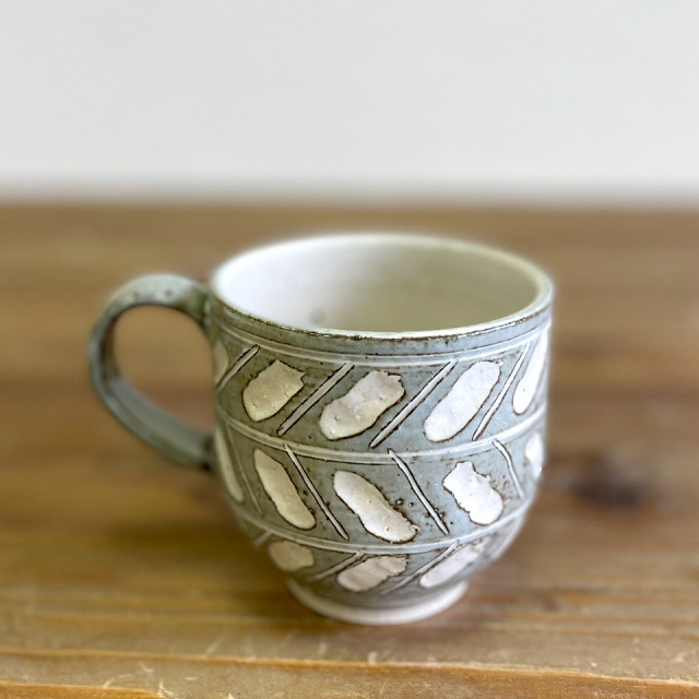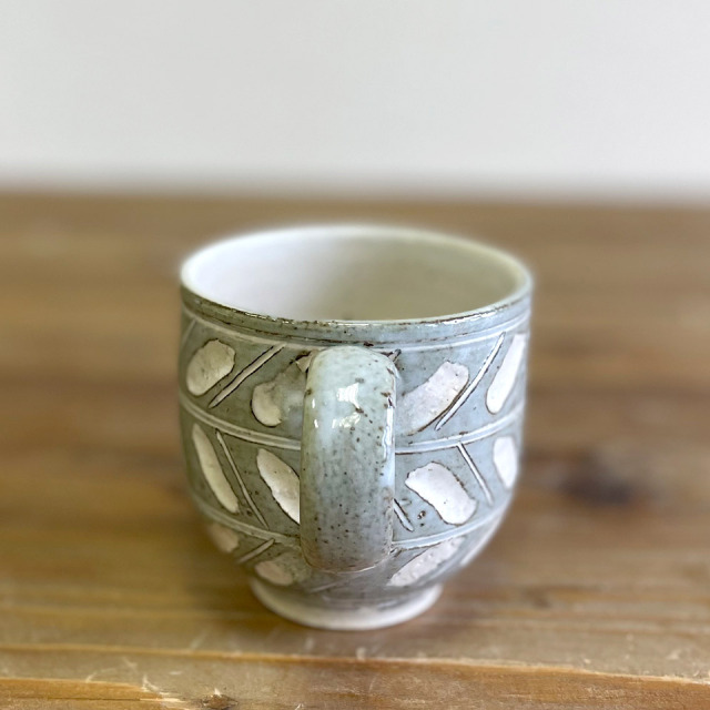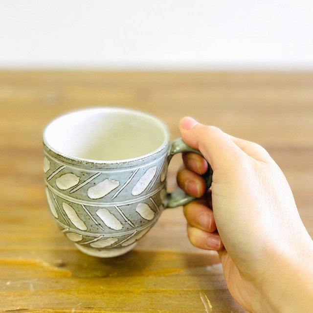 柔らかな掻き落としの模様と、やさしい色合いのマグカップは、珈琲や紅茶を入れ楽しむティータイムにぴったりです。つくりて 恵水窯(鎌田 恒之) サイズ Ф80mm × H80mm(持ち手含まず) 素 材 陶器 注意事項 ギャラリーや他のサイトでも販売しているため、ご注文時点で在庫がない場合は制作に2~3ヶ月程度かかる場合があります。予めご了承下さい。