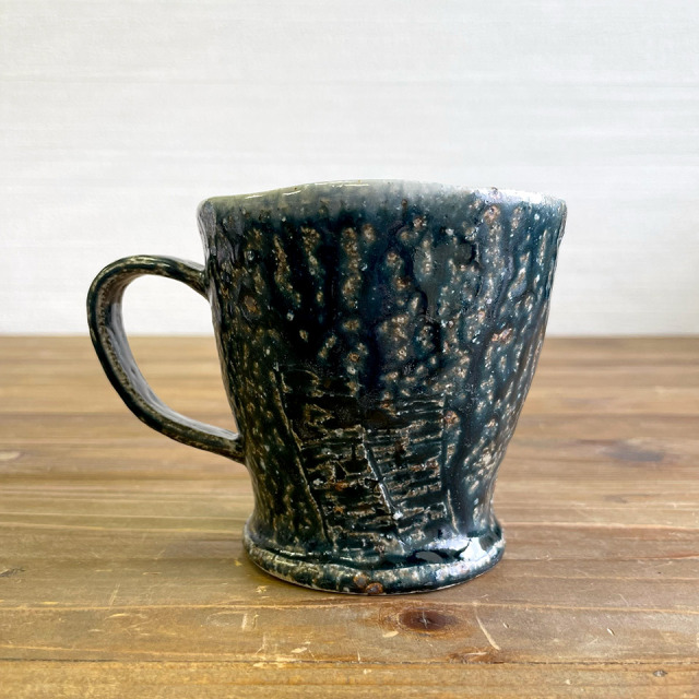 指先で土をつまみながら、まさに手びねりを繰り返して作り上げられたマグカップ。
