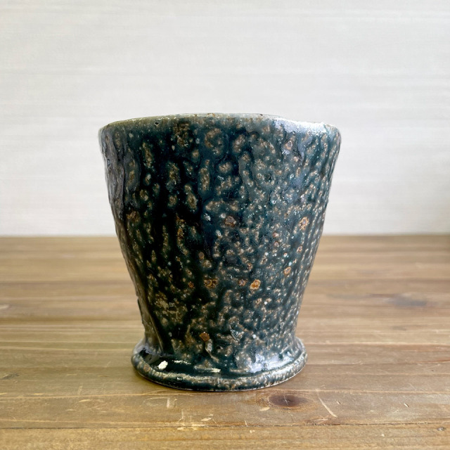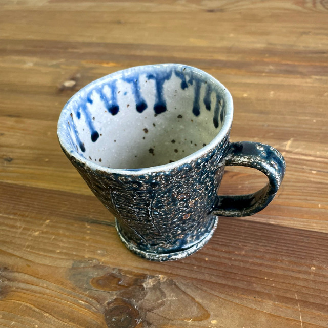 落ち着いた濃い青色です。つくりて てびねり舎(鎌田 恵子) サイズ 約Ф95mm × H90mm(持ち手含まず) 素 材 陶器 注意事項 ギャラリーや他のサイトでも販売しているため、ご注文時点で在庫がない場合は制作に2~3ヶ月程度かかる場合があります。予めご了承下さい。