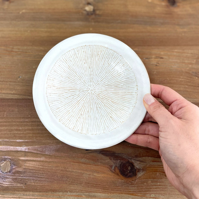 つくりて 工房わらし(宮元 美希) サイズ 約Ф155mm × H20mm 素 材 陶器 注意事項 ギャラリーや他のサイトでも販売しているため、ご注文時点で在庫がない場合は制作に2~3ヶ月程度かかる場合があります。予めご了承下さい。