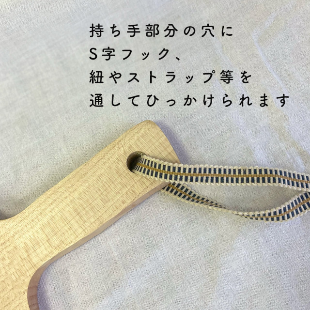 ご自宅はもちろん、キャンプなどのアウトドア時にも大活躍。持ち手部分の穴に、S字フックまたは紐やストラップを通して引っ掛けられます。つくりて 工作小屋moku-ren(品川雅男) サイズ 約W340mm×D165mm×H8mm 素 材 楓(カエデ) 注意事項 ギャラリーや他のサイトでも販売しているため、ご注文時点で在庫がない場合は制作に2~3ヶ月程度かかる場合があります。予めご了承下さい。