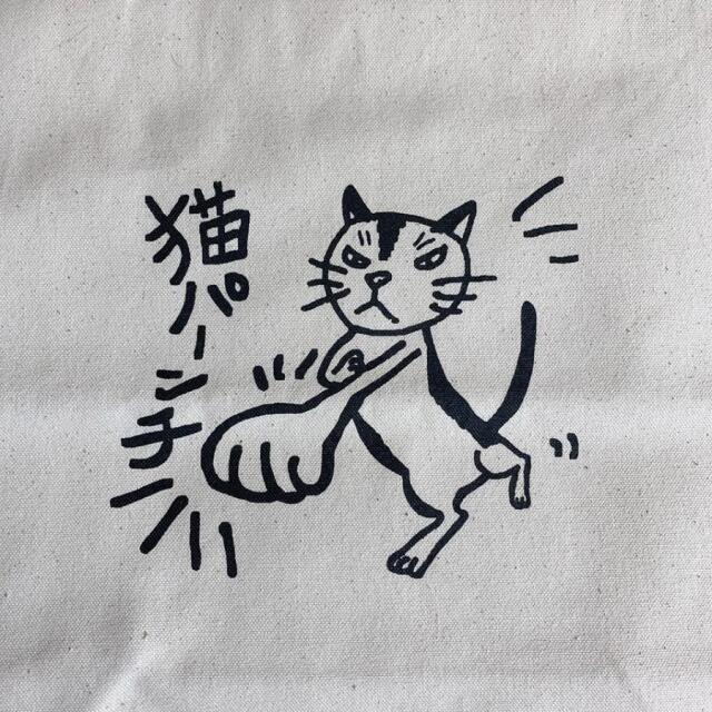 キャンパス地トートバッグ「猫パンチ」【のび工房】