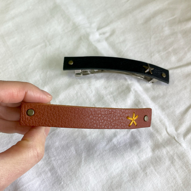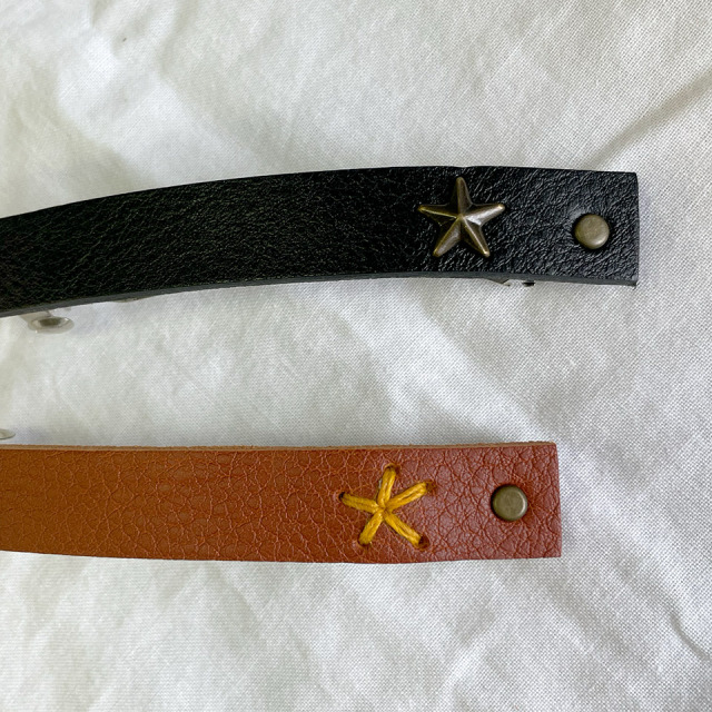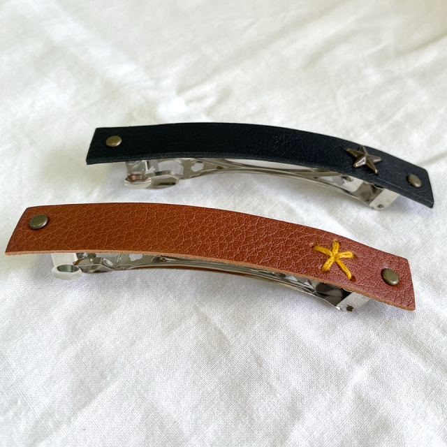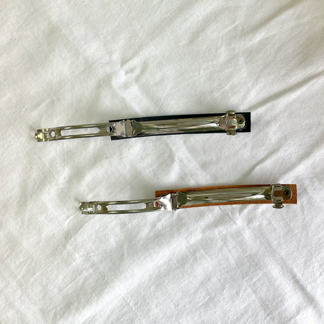 レザーを使用したシンプルでオシャレなバレッタ。カラーはブラックとブラウンの2色からお選び頂けます。