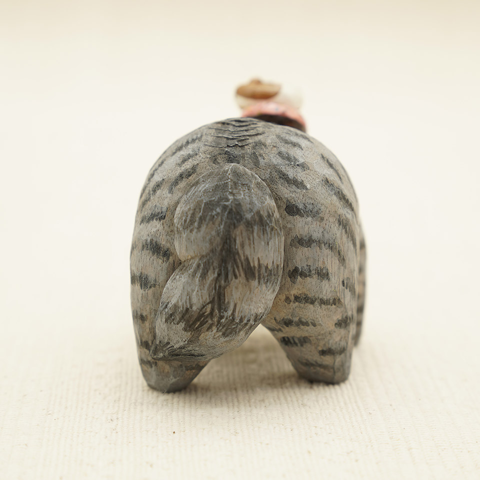 This time, it’s a adorable mackerel tabby cat balancing a donut!As always, the donut is kept at a dangerously precarious angle!つくりて HITOMIKO(木村 瞳) サイズ 約W90mm × D55mm× H65mm 重量 約59g 素 材 楠(クス) 注意事項 お使いのモニター設定、お部屋の照明等により実際の商品と色味が異なる場合がございます。予めご了承下さい。