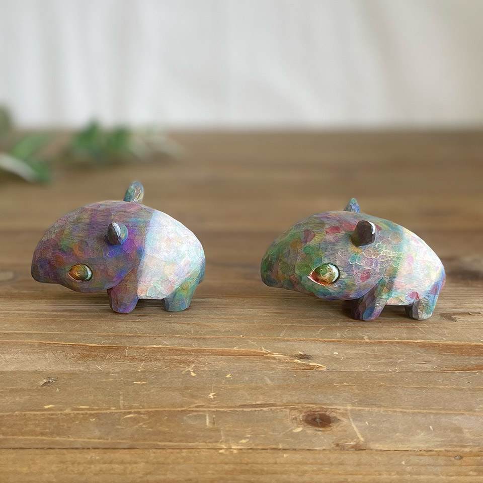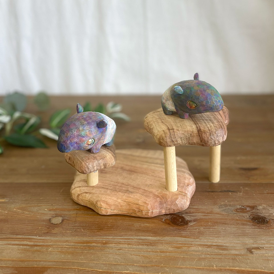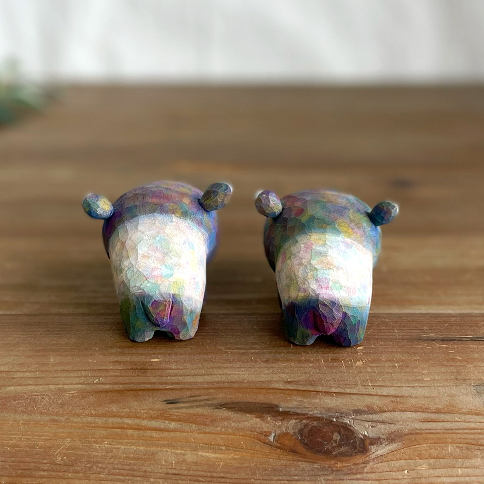 表面の彫り跡をあえて残すことで、木材ならではの手触りを感じることができます。バクの大きい頭とツヤッツヤの瞳、短い手足が愛らしく見ていて癒されます。