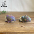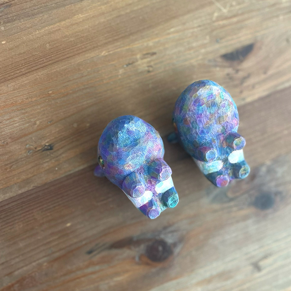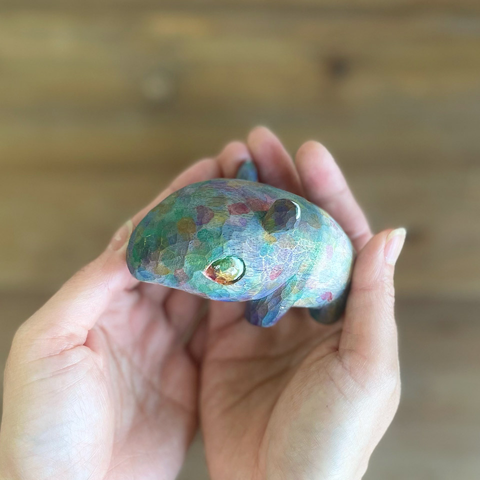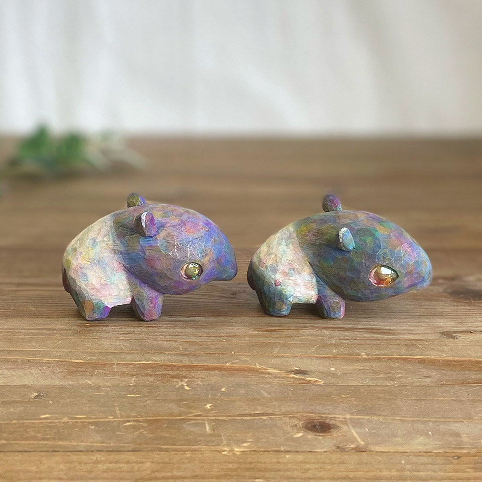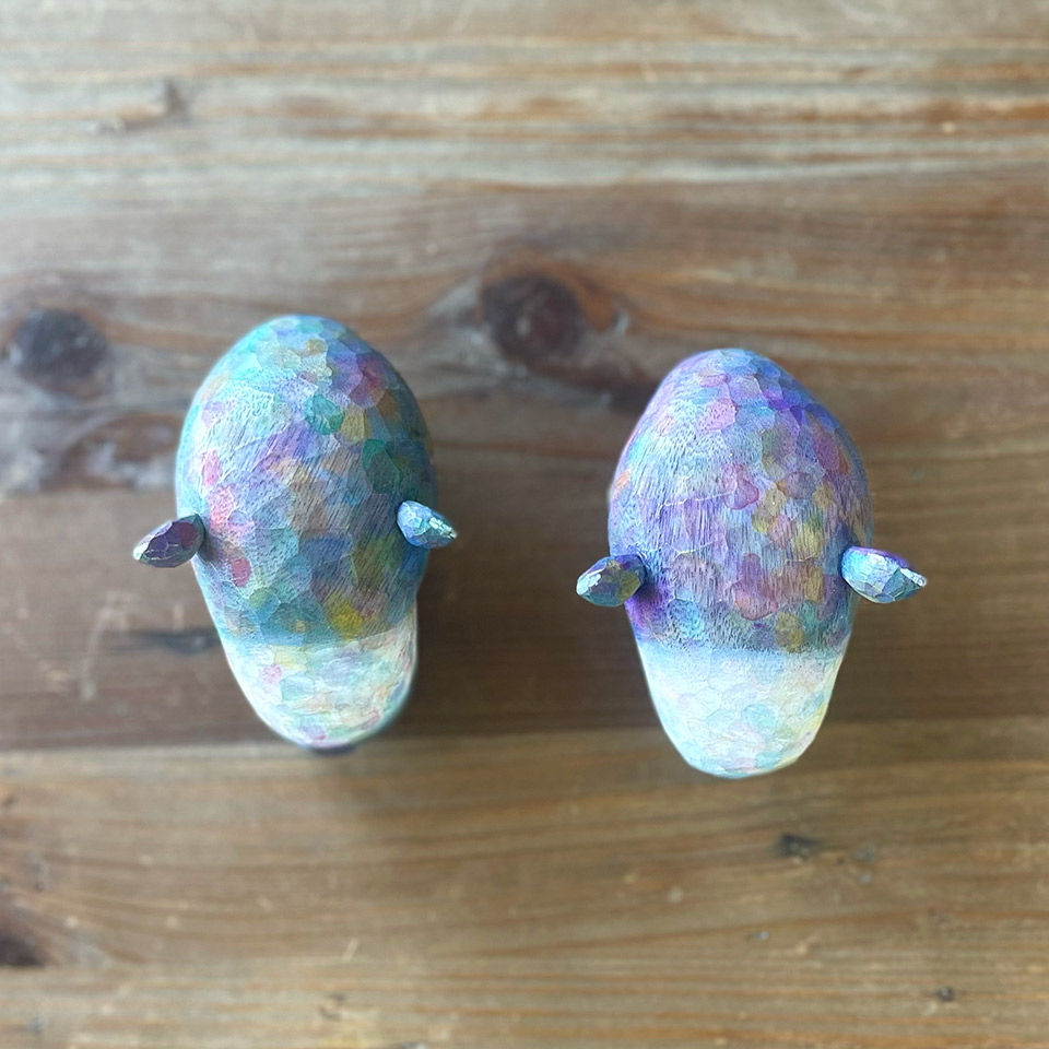 しろくもさんの作品は、とにかく「かわいい」。作品を目にした人たちが、必ずと言って良いほど口にするこの言葉。フォルムはもちろんのこと、絶妙な色使いでの彩色。彫り跡をあえて残すことで、手仕事ならではの温かみを感じてもらうことを大切にしているのだとか。どの作品を見ても、思わず微笑んでしまうこの感じ。なんだか、良い夢の中で幸せを運んできてくれる妖精のような...絵本の中のキャラクターが、立体で彫り出されたような......ふわふわと幸せな気持ちにしてくれる、この不思議な世界観が「小泉ワールド」なのだと感じる。