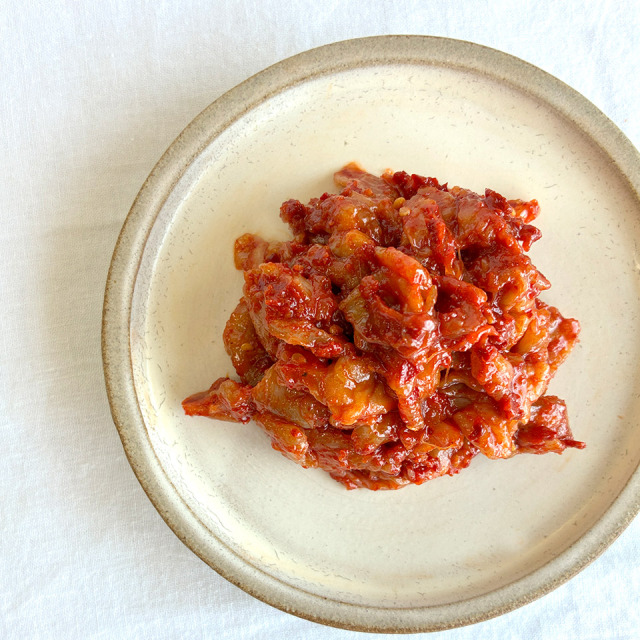 鱈の内臓をヤンニョムに漬け込み醸成させたチャンジャはお酒のお供にピッタリです。