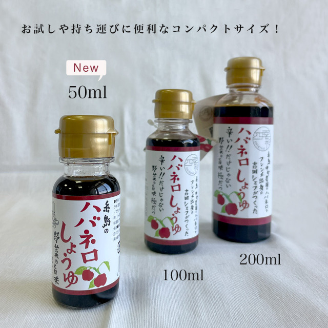 玉子かけご飯、お刺身、冷や奴、湯豆腐、山芋、雑炊、和風パスタの仕上げ、カレーの隠し味に。和洋中、お料理の種類を問わずお使いいただけるハバネロしょうゆ。の便利なミニボトルの2本セット。つくりて シェフのごはん屋さん四季彩 内容量 各50ml 原材料名 ■ハバネロオリーブオイル:オリーブオイル、ハバネロ