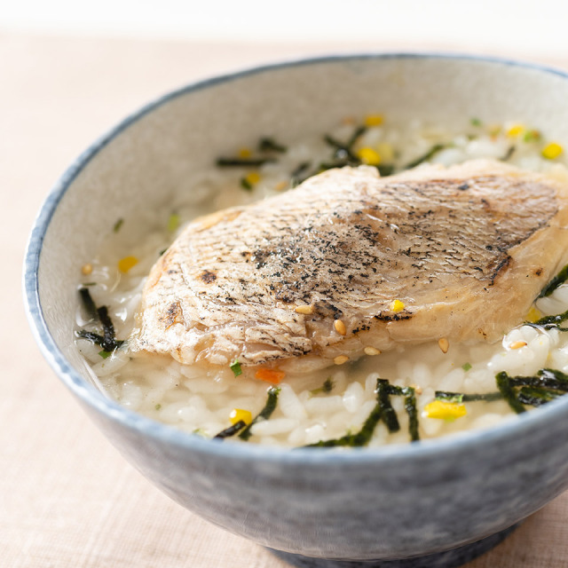 鯛のアラを手間ひまをかけて焼き、鯛の風味が存分に味わえるだしを使用したお茶漬けです。