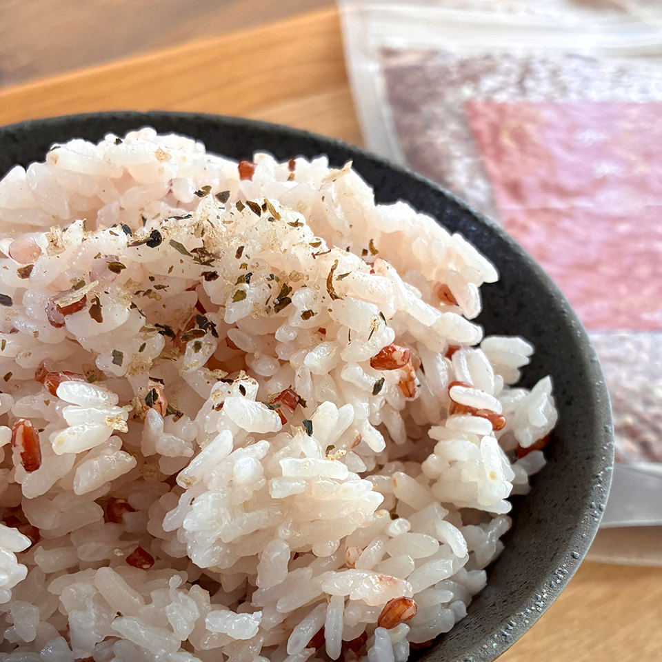 福岡県糸島の自然の中で育った、新品種『二丈赤米』はビタミン(ナイアシンが特に豊富)、ミネラル(銅・マグネシウムが特に豊富)、食物繊維が豊富で、色素に含まれるカテコールタンニン(カテキン)の抗酸化作用にも注目されています。