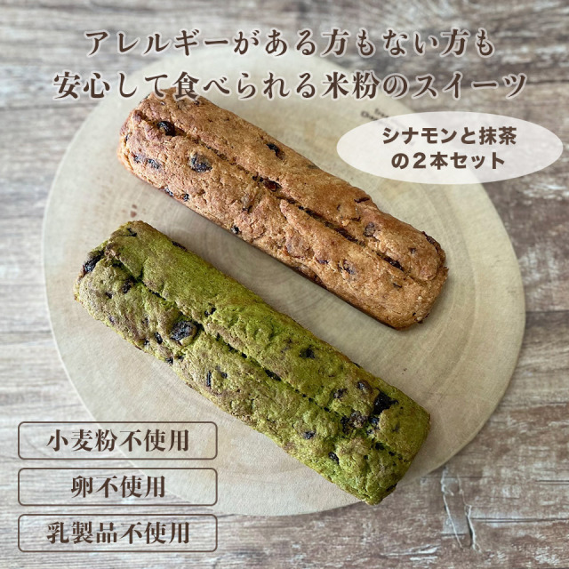 シナモンと抹茶の2本セットでどちらも4種類のレーズン(カリフォルニア、サルタナ、カランツ、グリーン)がゴロゴロとたっぷり入っていてシナモンと抹茶それぞれの香りや風味がしっかりと味わえるパウンドケーキです。