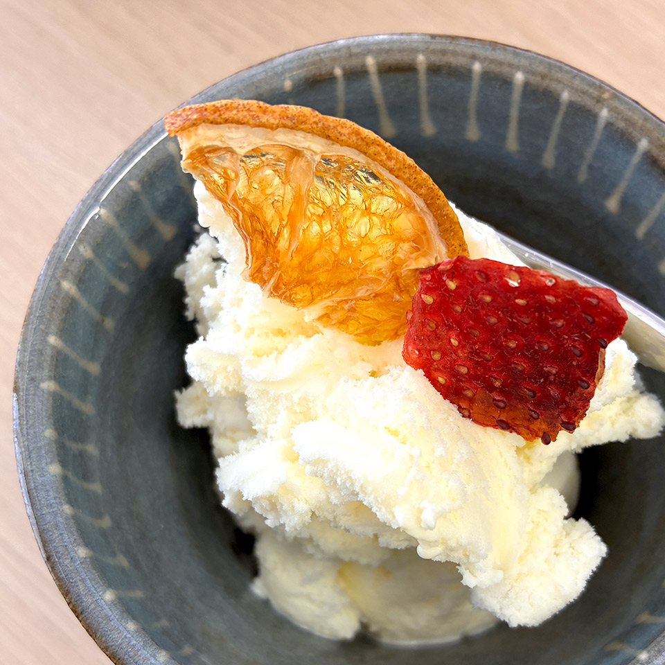 ここでは糸島産の野菜や果物をシンプルに、香り豊かにドライにした「フレーバフルドライ」の製造を行っています。「素材そのものの自然の甘さ、香り、苦味など全ての味を楽しんでほしい」という想いから、砂糖・香料・オイルコーティングなど一切なしの完全無添加が魅力。