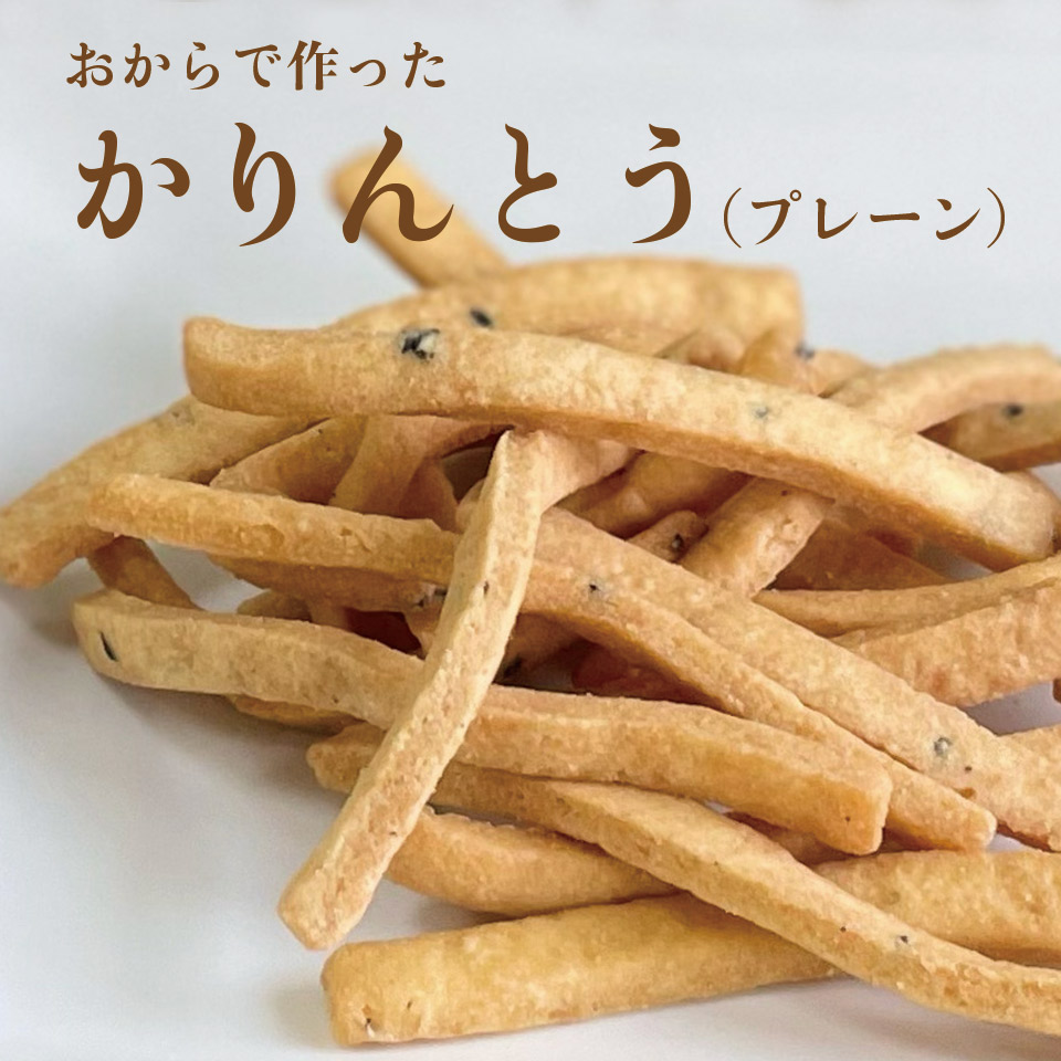 九州産大豆を使用した「おから」で作ったかりんとうです。サクサク、ポリポリと歯応えのある食べ出したら止まらない!一品です。