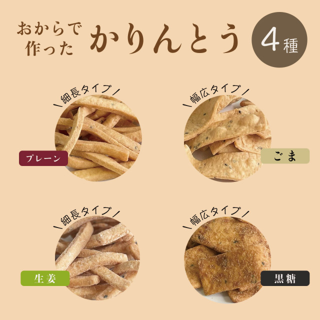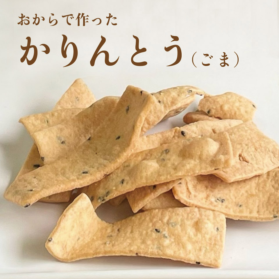 九州産大豆を使用した「おから」で作ったかりんとうです。サクサク、ポリポリと歯応えのある食べ出したら止まらない!一品です。
