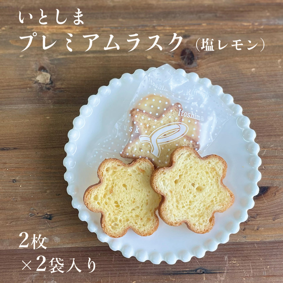 サクサク上品な食感と濃厚な味のフレーバーが楽しめる、糸島の牛乳「伊都物語」を贅沢に使用したプレミアムラスク。ラスク用にパン生地からこだわって作り一枚一枚丁寧に塗り上げ、焼き上げています。
