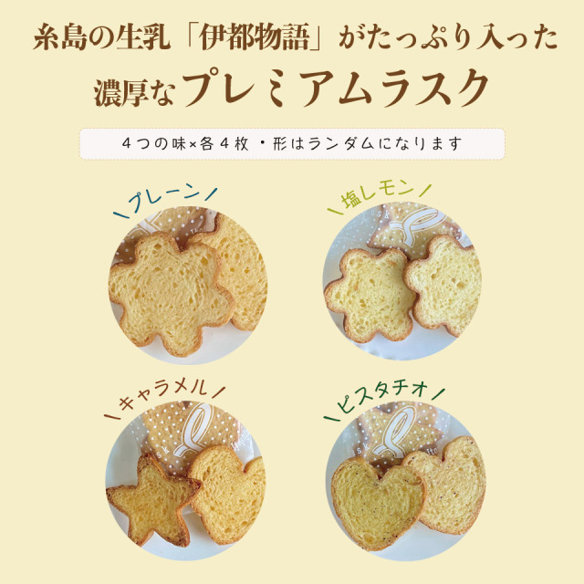 ■いとしまプレミアムラスク(プレーン・塩レモン・ピスタチオ・キャラメル)