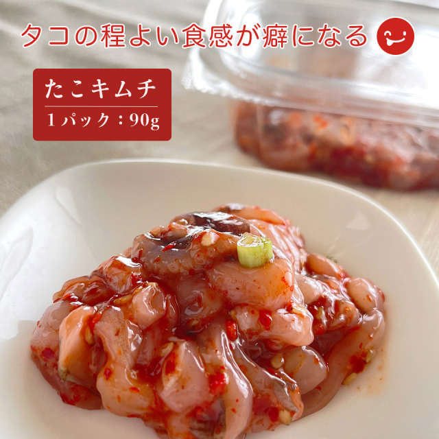 開封日と数日後で、発酵具合により異なった美味しさが楽しめます。毎日少しずつつまみながら自分好みの発酵具合を見つけるのも楽しい。コリコリとしたタコの歯ごたえとヤンニョムの辛味と旨味が相乗効果を生む絶品キムチ。